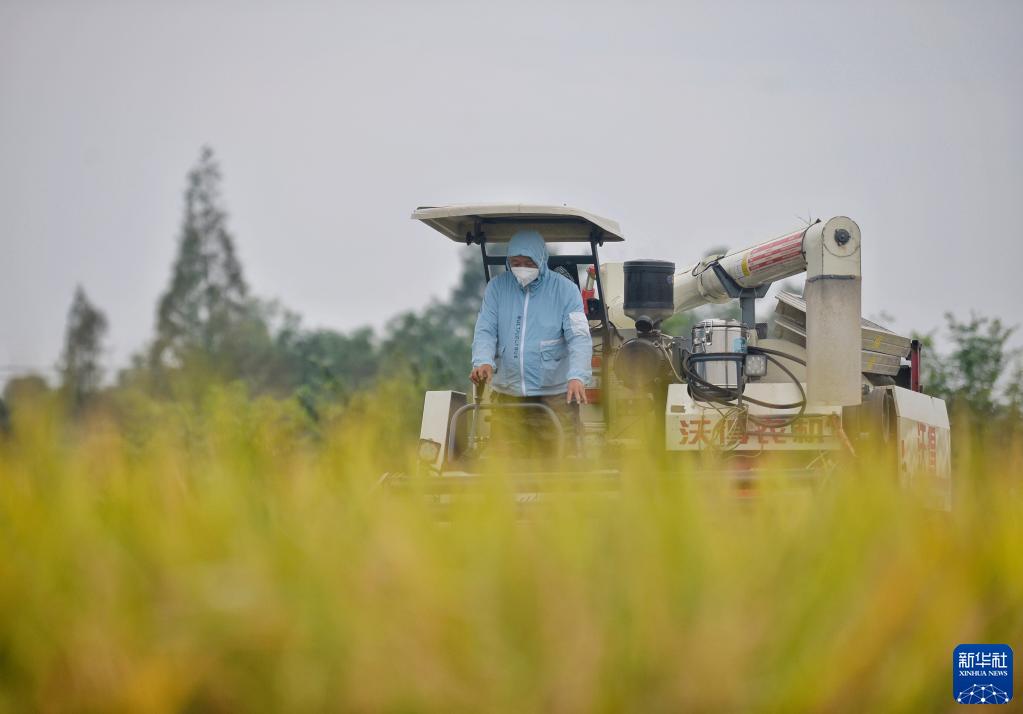 時值秋收,農業大省四川省各地農田里一片繁忙的收割景象。