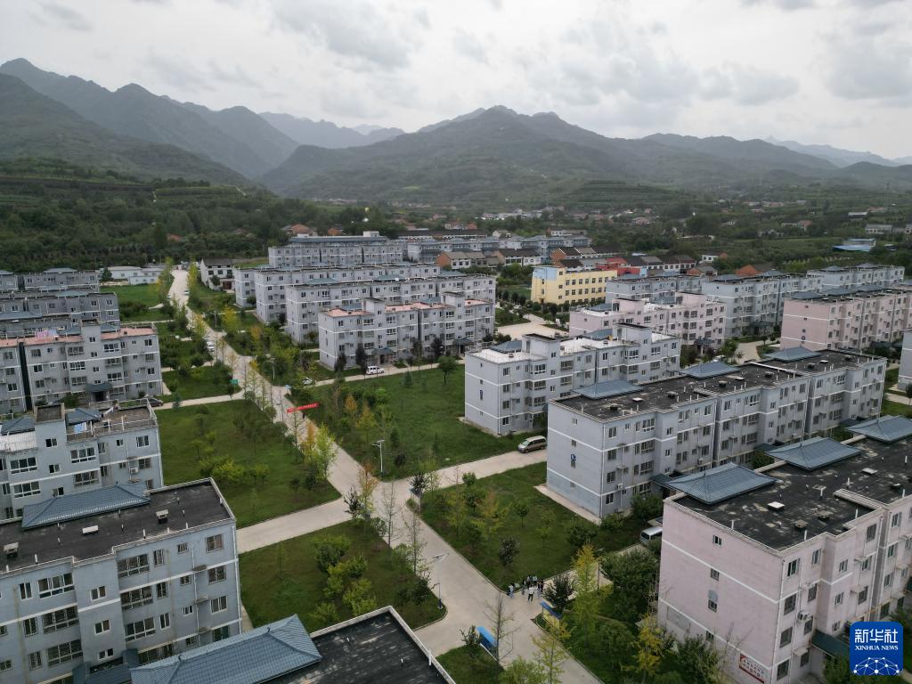 這是9月22日拍攝的陜西省周至縣馬召鎮(zhèn)安富園移民搬遷社區(qū),社區(qū)居民大多從黑河水源地搬遷至此(無(wú)人機(jī)照片)。