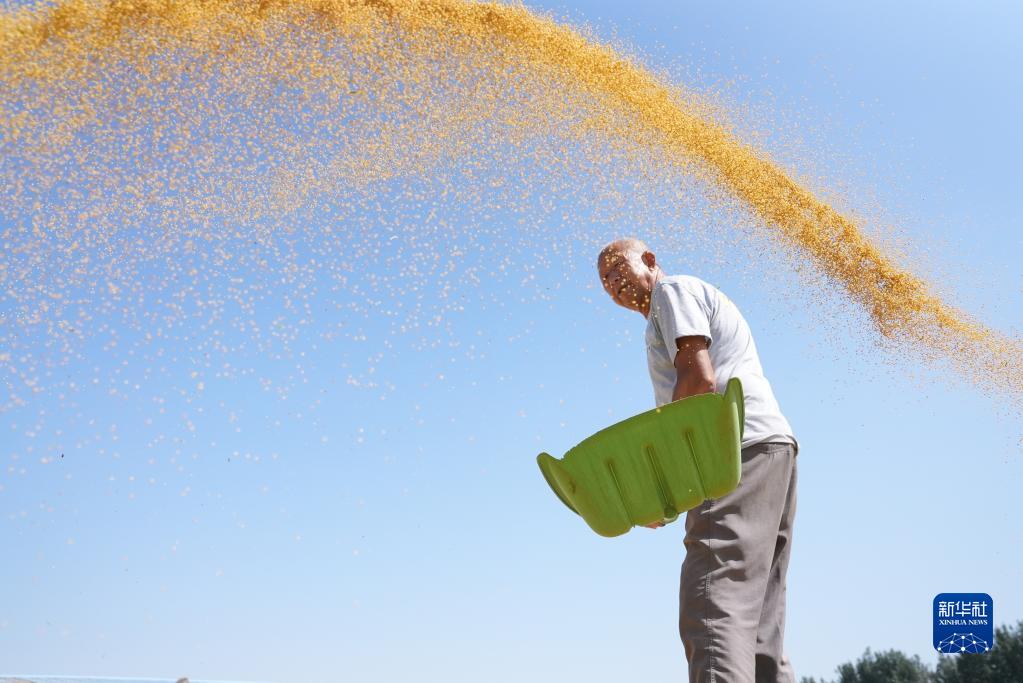 9月22日,在河北省邢臺(tái)市南和區(qū)郝橋鎮(zhèn)吳村,農(nóng)民晾曬收獲的谷子。