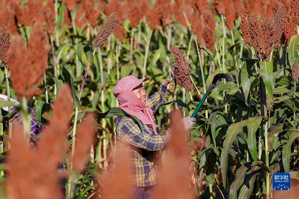 9月21日,浙江省杭州市淳安縣楓樹嶺鎮上江村村民在收割高粱。