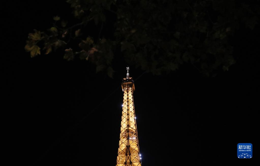 這是9月22日拍攝的整點時刻閃燈的法國巴黎地標性建筑——埃菲爾鐵塔。