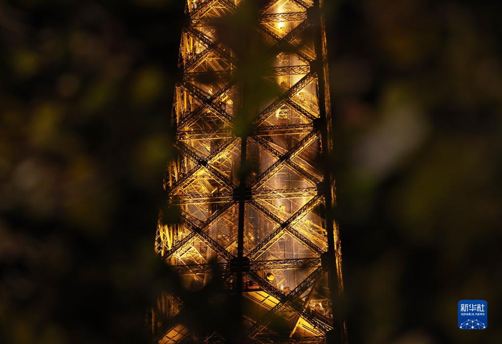 這是9月22日拍攝的亮燈的法國巴黎地標性建筑——埃菲爾鐵塔。