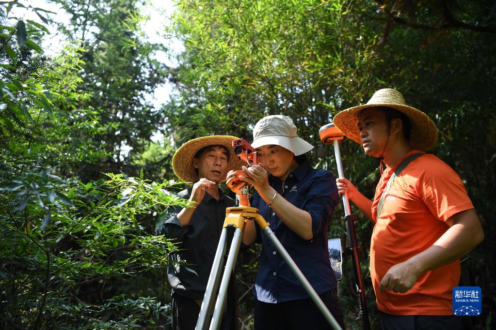 9月22日,在廣東韶關(guān)樂(lè)昌市張溪村的生態(tài)監(jiān)測(cè)樣地,白拉曲珍(中)和師傅江建發(fā)(左)、同事伍國(guó)清在操作設(shè)備。