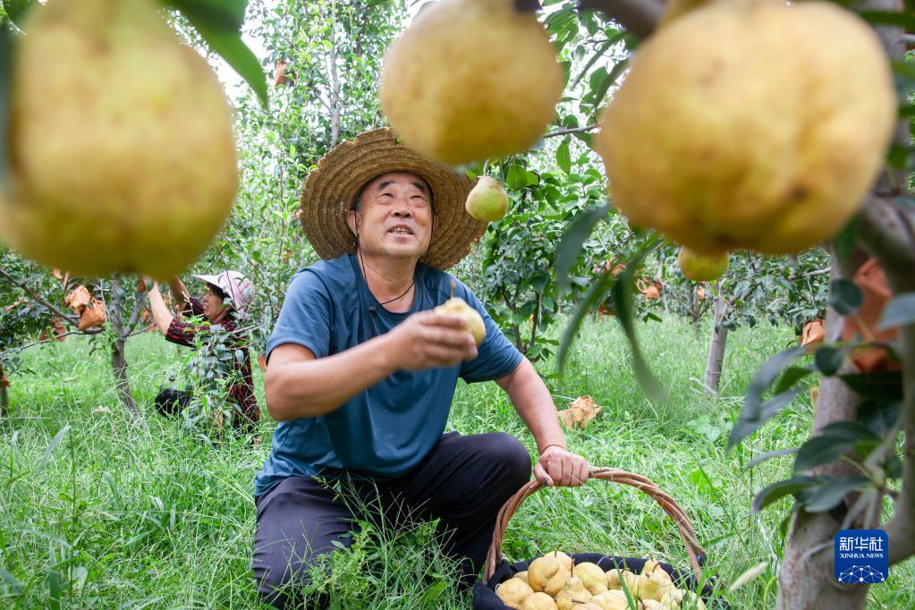 9月20日,在山東省淄博市高青縣黑里寨鎮(zhèn)大圣寺村,“50后”王宗剛和老伴李秀榮采摘丑梨。2019年,王宗剛退休后回到農(nóng)村老家,和老伴流轉(zhuǎn)土地52畝,建起家庭農(nóng)場(chǎng),發(fā)展丑梨種植。今年預(yù)計(jì)產(chǎn)量達(dá)到8萬斤,收入20多萬元。