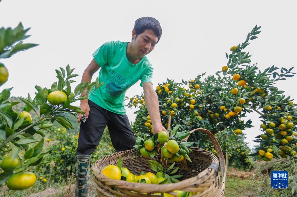 9月20日,在貴州省獨山縣下司鎮(zhèn)新同村,“90后”果農(nóng)李東在自家柑橘園中采摘柑橘。李東家種植柑橘50余畝,今年預(yù)計產(chǎn)出新鮮柑橘20萬斤。