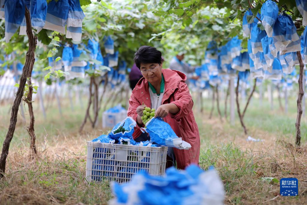 9月20日,在河北省邢臺市廣宗縣南寺郭村的果仙園葡萄基地,“60后”付鳳玲在整理剛采摘的“陽光玫瑰”葡萄。付鳳玲從事葡萄種植16年,今年預計收獲各種葡萄30余萬斤。