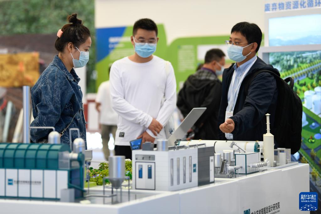 9月23日,在四川省成都市天府農業博覽園“大國糧倉科技館”內,參觀者在了解農業農村生產生活廢棄物資源化循環系統。