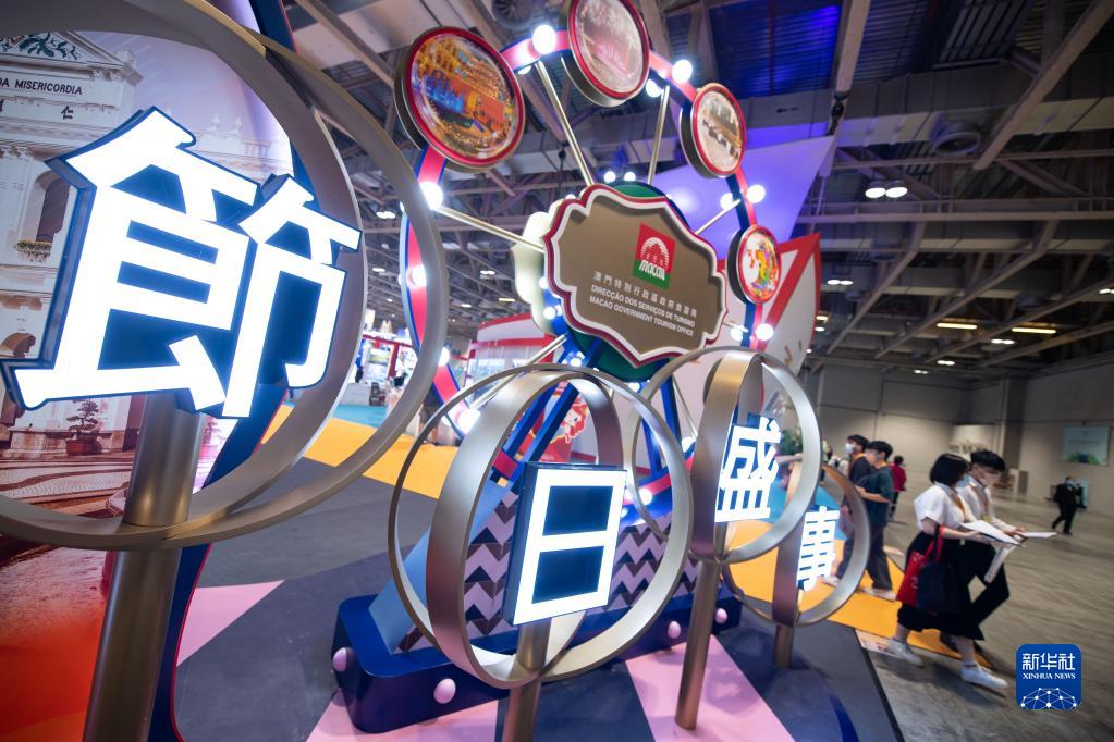 9月23日,觀眾從澳門國際旅游(產業)博覽會澳門館前走過。新華社記者 張金加 攝
