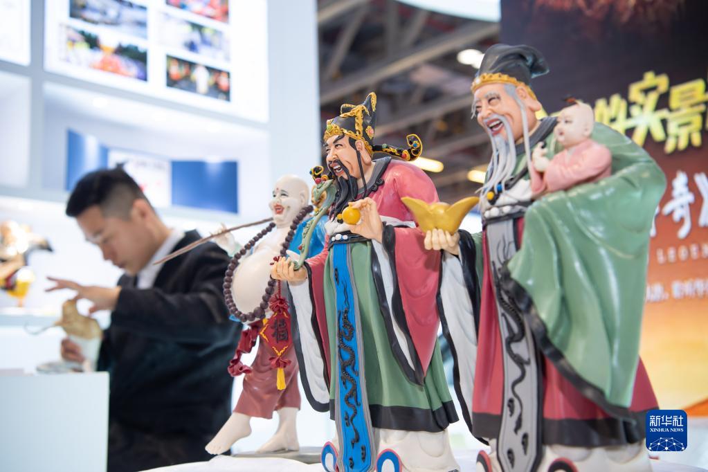 9月23日在澳門國際旅游(產業)博覽會陜西館拍攝的泥塑。新華社記者 張金加 攝