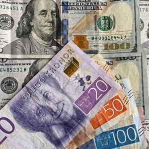 這是9月23日在瑞典斯德哥爾摩拍攝的瑞典克朗和美元紙幣。