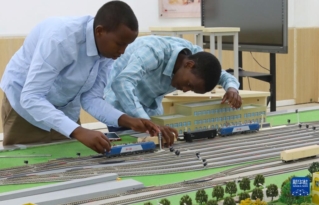 9月19日,在位于吉布提首都吉布提市的吉布提工商學校,學生在魯班工坊鐵道運營沙盤教學區學習。