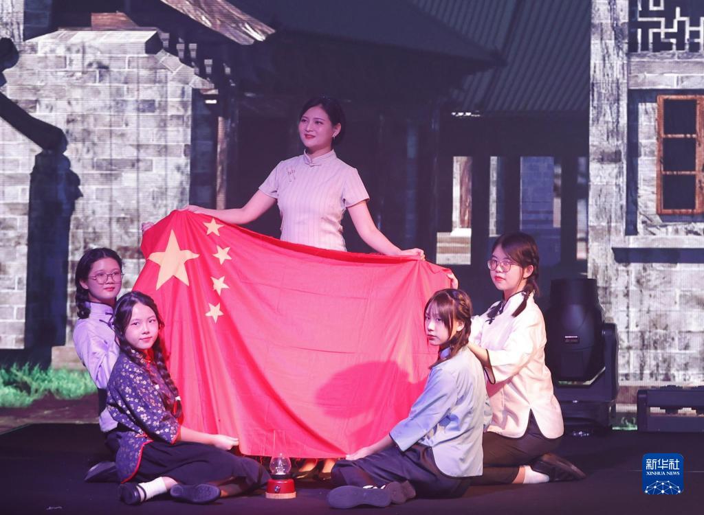 9月25日,演員演出以澳門升起第一面五星紅旗的真實(shí)故事為藍(lán)本改編的短劇《五星紅旗》。新華社發(fā)
