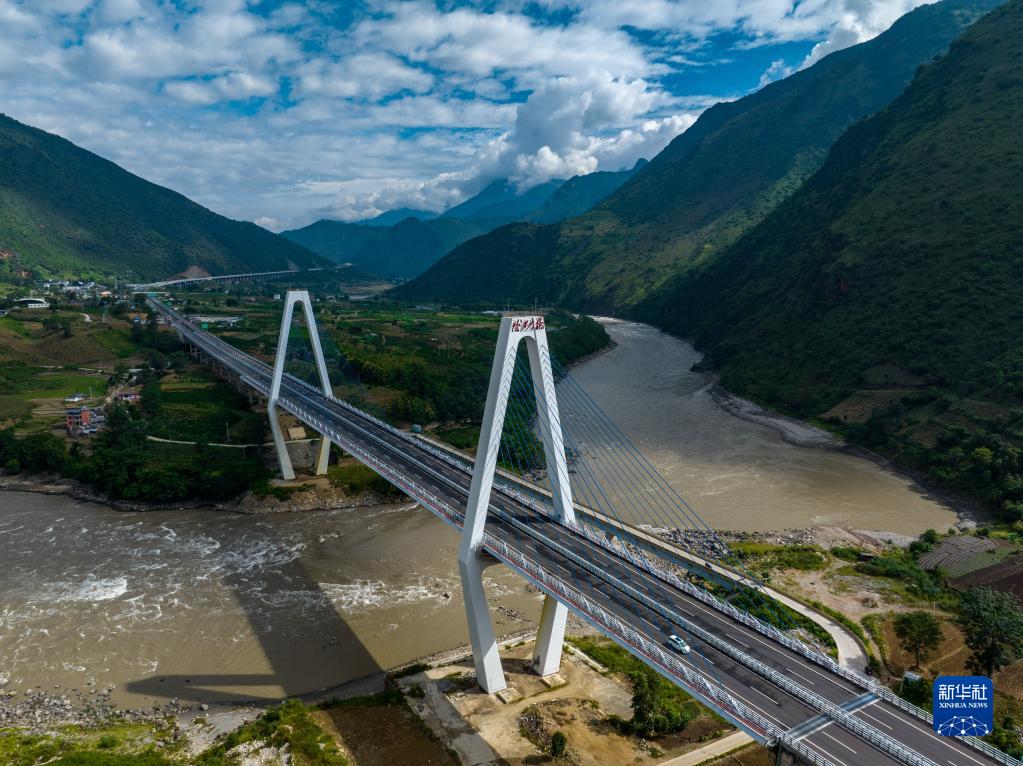 這是2022年9月15日拍攝的云南保(山)瀘(水)高速怒江大橋。該高速是怒江州的首條高速公路(無人機(jī)照片)。新華社記者 江文耀 攝