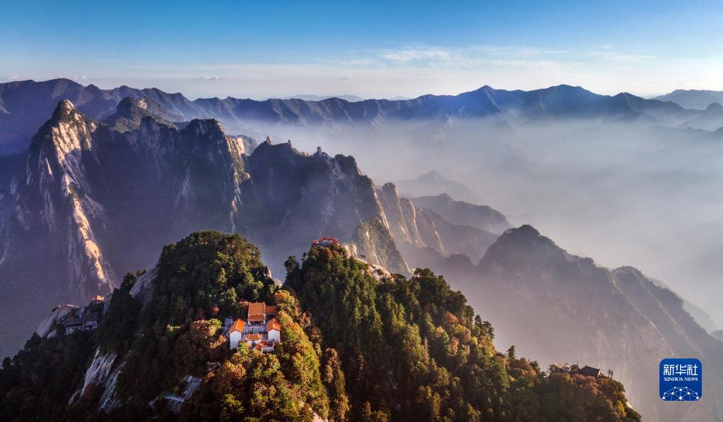 9月25日,夕陽西下,雨后初霽的西岳華山,云霧縈繞,宛如仙境(無人機(jī)照片)。