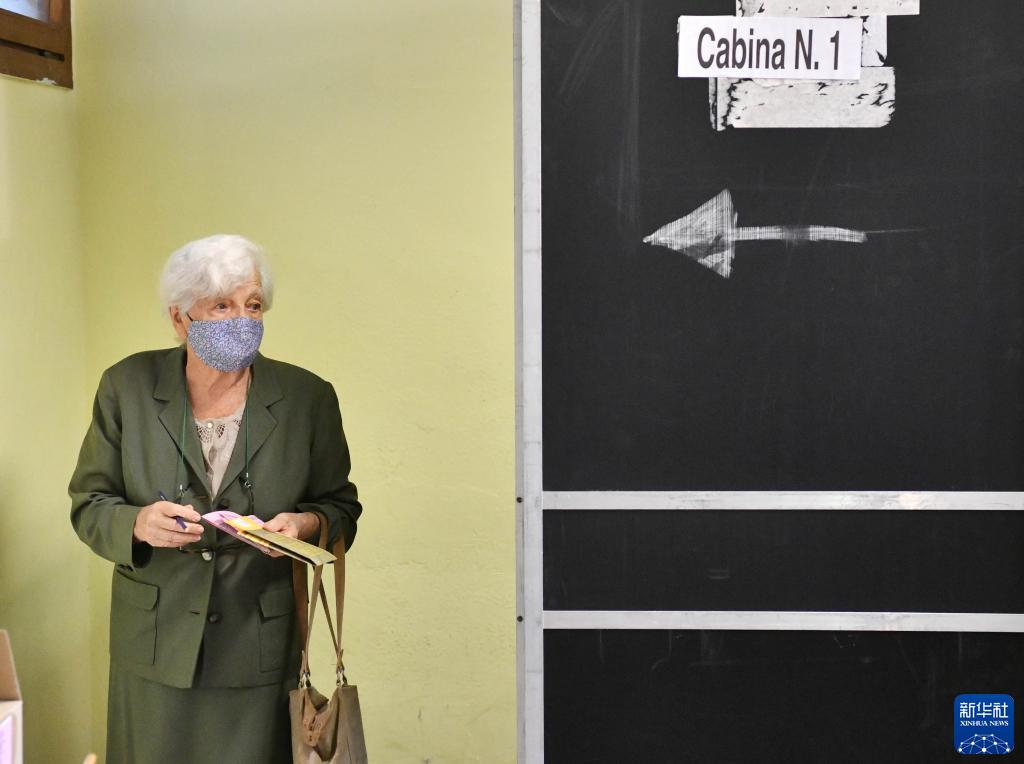 9月25日,在意大利羅馬一處投票站,一名選民準(zhǔn)備投票。