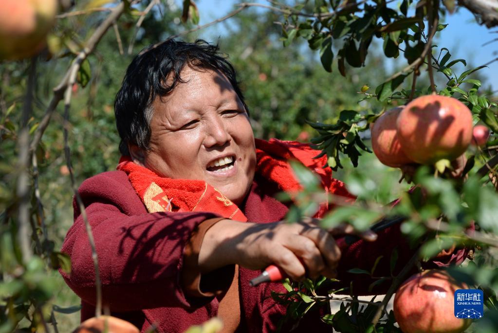 9月26日,在陜西省潼關(guān)縣港口社區(qū)東臺(tái)塬,裕興農(nóng)業(yè)開發(fā)有限公司的員工在采摘軟籽石榴。