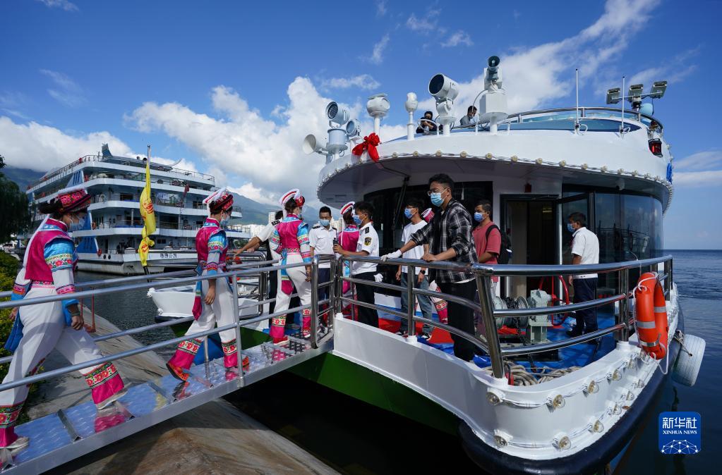 當日,由大理旅游集團投資建造的新能源游船“風花雪月號”在云南省大理白族自治州洱海首航。相比傳統燃油動力船舶,新能源“風花雪月號”游船將大大降低污染物排放,助力洱海生態保護。