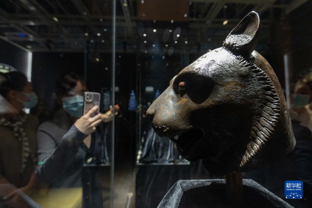 9月26日,觀眾在觀看展出的虎首。