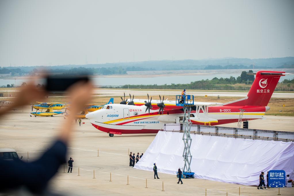 9月27日,一名觀眾在拍攝“鯤龍”AG600M。
