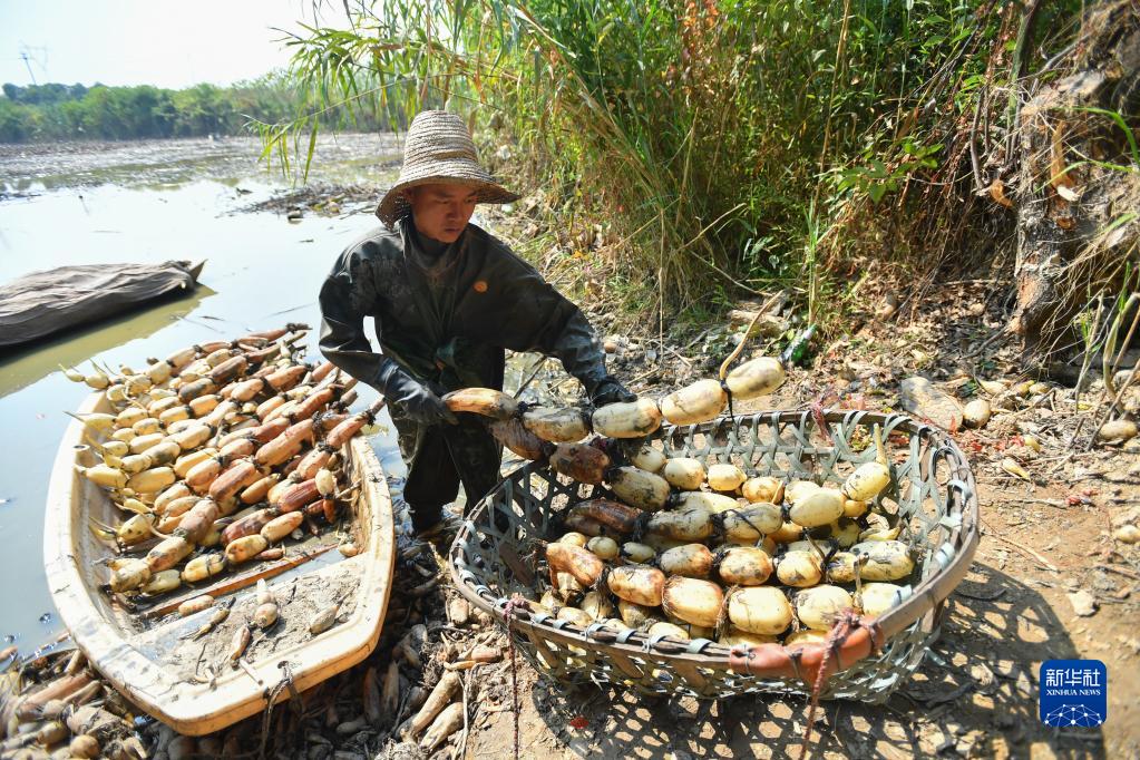 金秋時節,湖南省長沙市望城區靖港鎮蘆江社區種植的蓮藕喜獲豐收,農民緊抓農時搶收蓮藕,供應市場。近年來,長沙市望城區靖港鎮蘆江社區依托地理環境優勢,因地制宜發展蓮藕產業,帶動當地百姓就業增收。