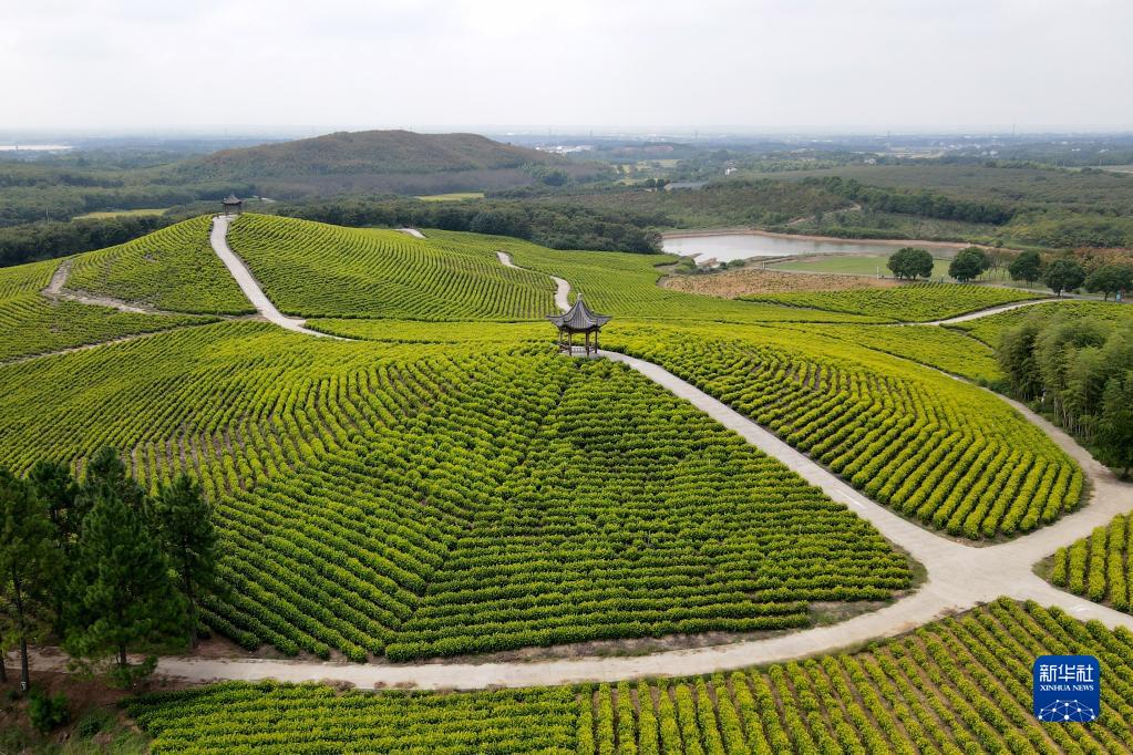 秋日里,安徽省宣城市郎溪縣濤城鎮大佛山養心谷的黃金茶園景色宜人,茶樹層層疊疊、錯落有致,呈現出一幅美麗的秋季畫卷。