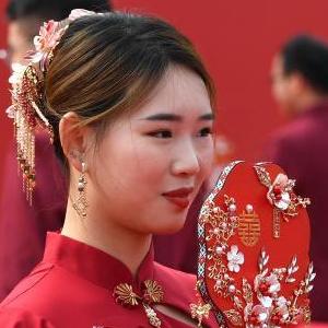 9月27日,新人們在集體婚禮儀式現場。