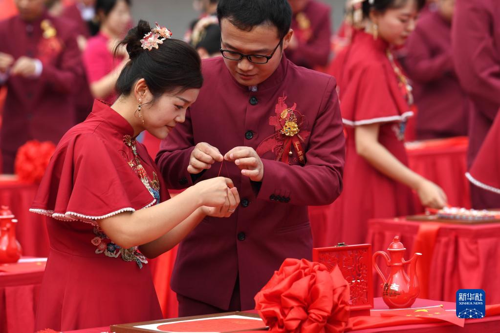 9月27日,新人們在集體婚禮儀式現場。