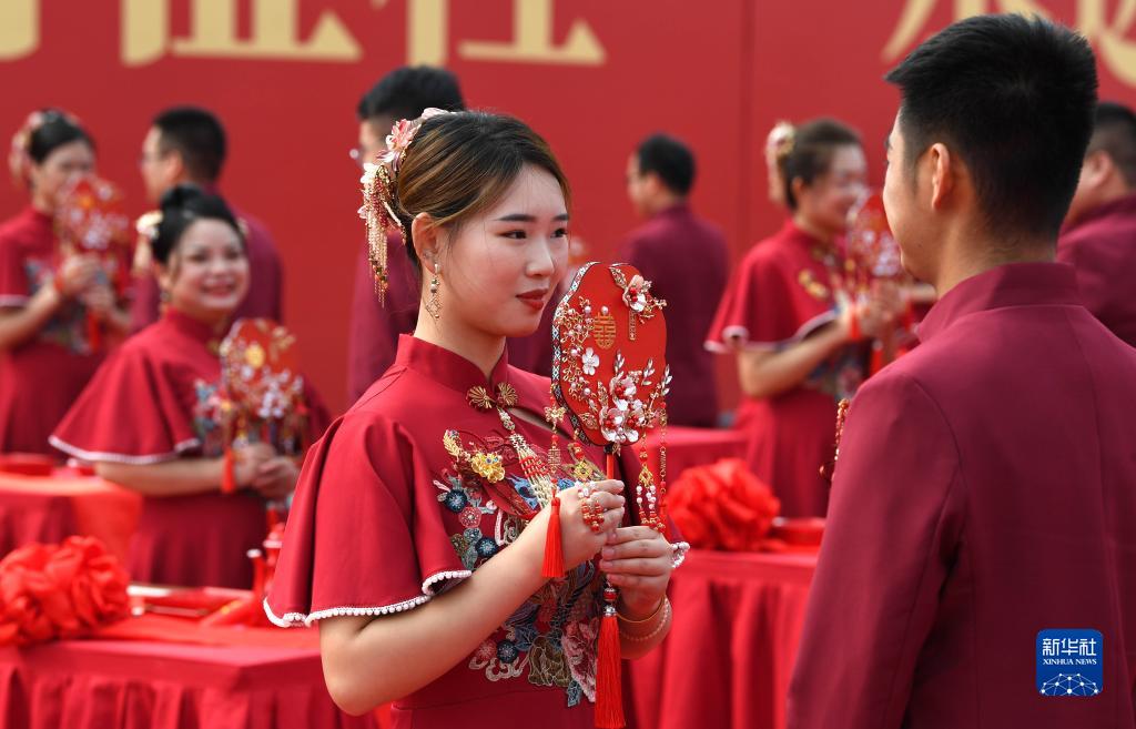 9月27日,新人們在集體婚禮儀式現場。