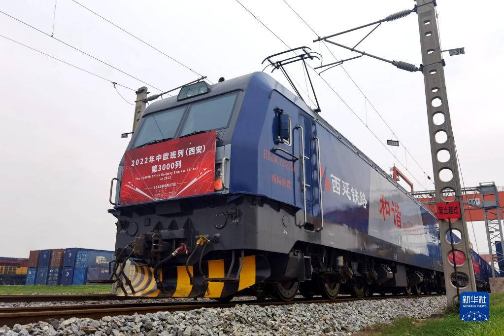 2022年中歐班列長安號第3000列在西安國際港站準備發車(9月27日攝)。