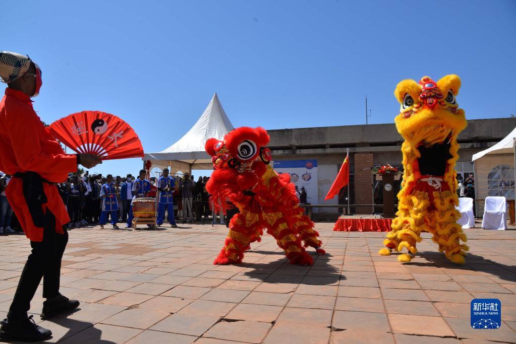 9月27日,塔那那利佛大學孔子學院學生表演舞獅。