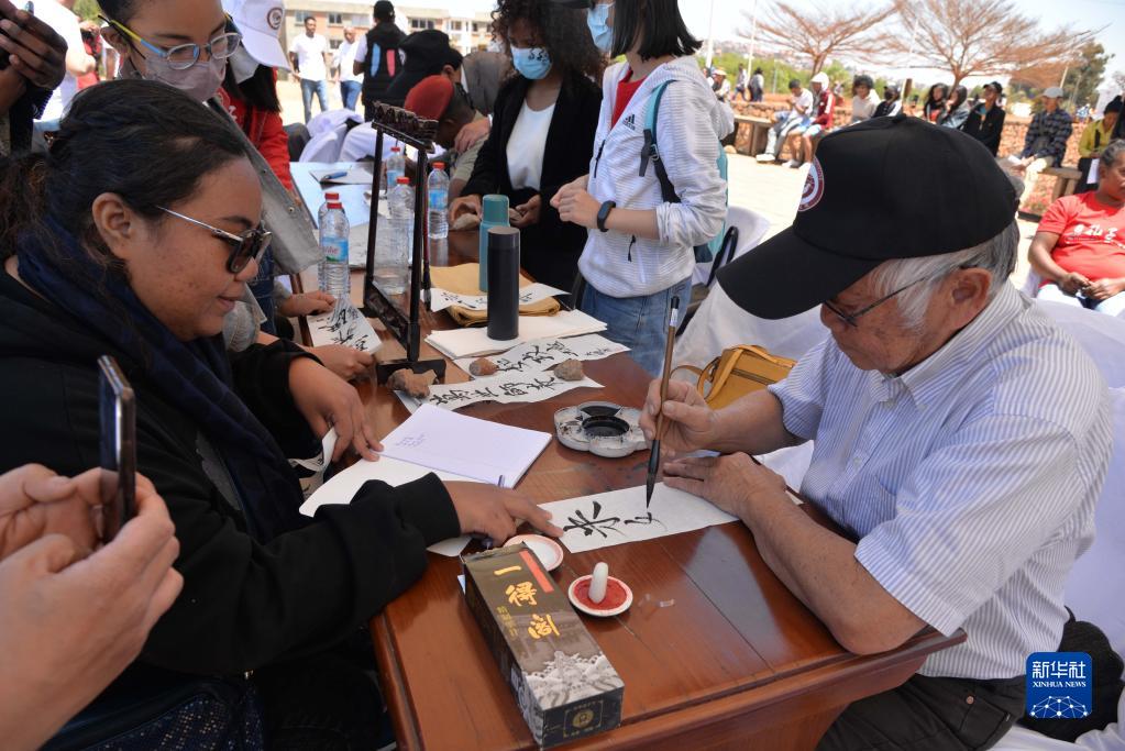 9月27日,塔那那利佛大學孔子學院的師生們展示中國書法。