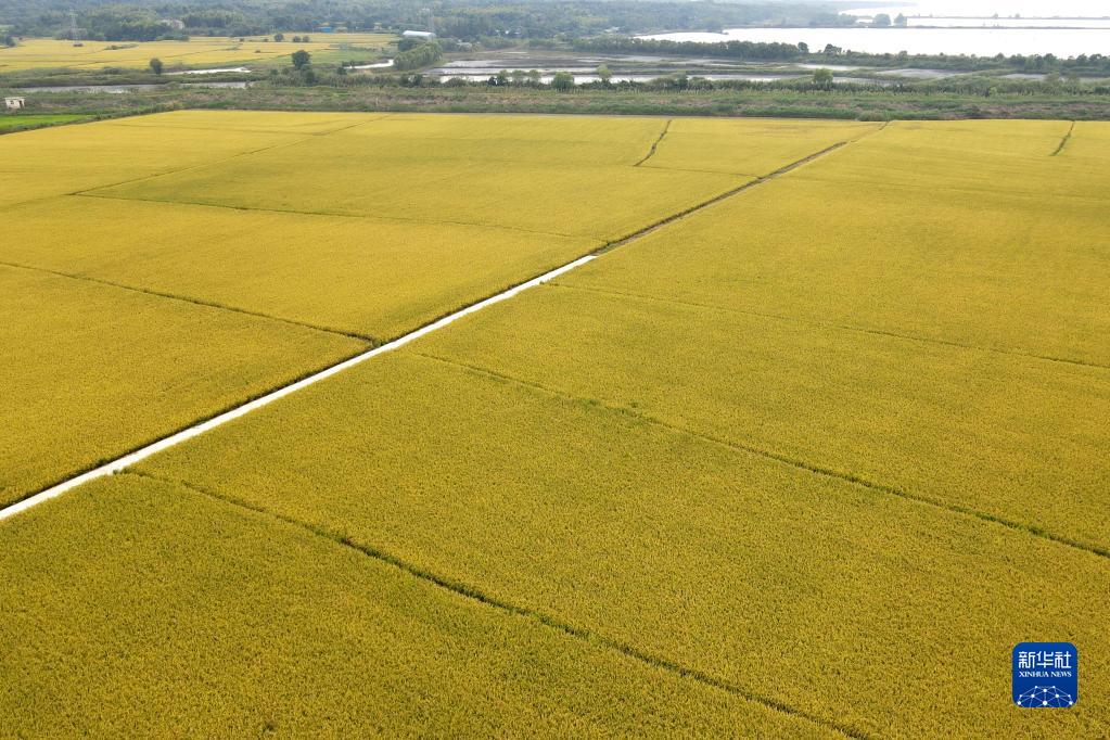 9月27日拍攝的安徽省郎溪縣飛鯉鎮的一處稻田(無人機照片)。
