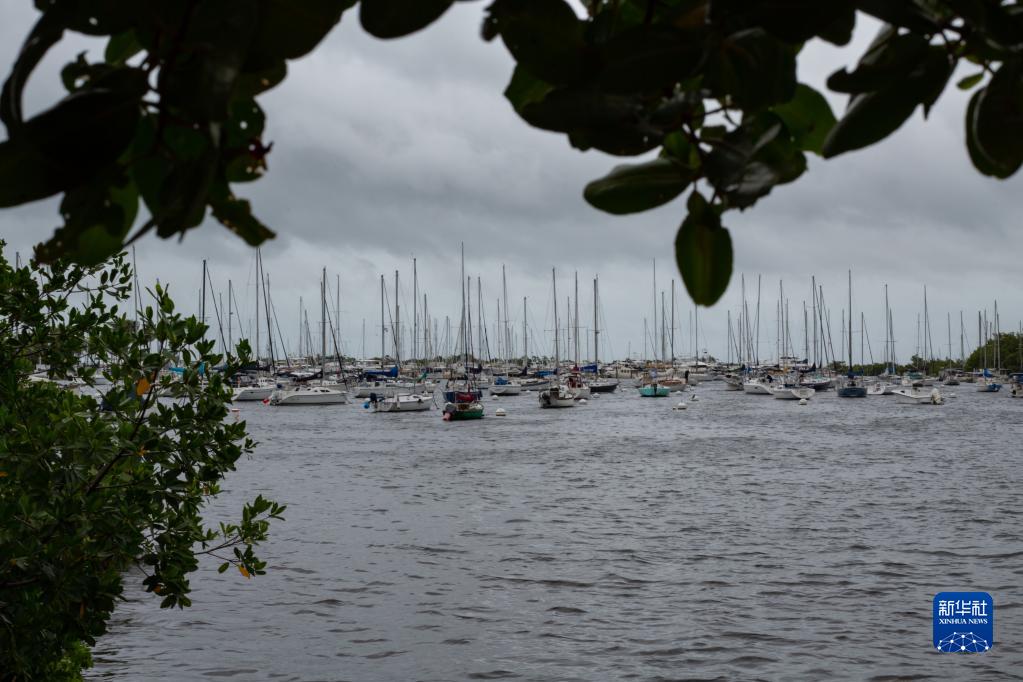 9月27日,在美國(guó)佛羅里達(dá)州邁阿密,船只??吭诟劭诙惚芗磳⒌絹淼娘Z風(fēng)。