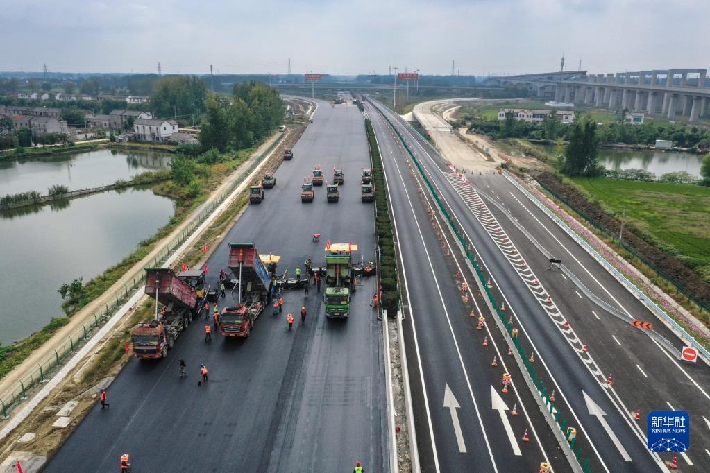 9月28日,京滬高速公路淮安段正在擴建施工中(無人機照片)。