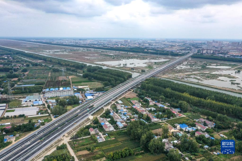 擴建中的新沂河特大橋正在施工中(9月27日攝,無人機照片)。