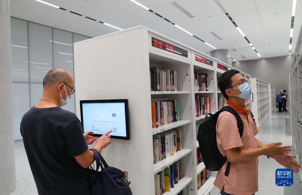 9月28日,讀者在智能書架區通過安放在書架上的電腦查詢書籍。