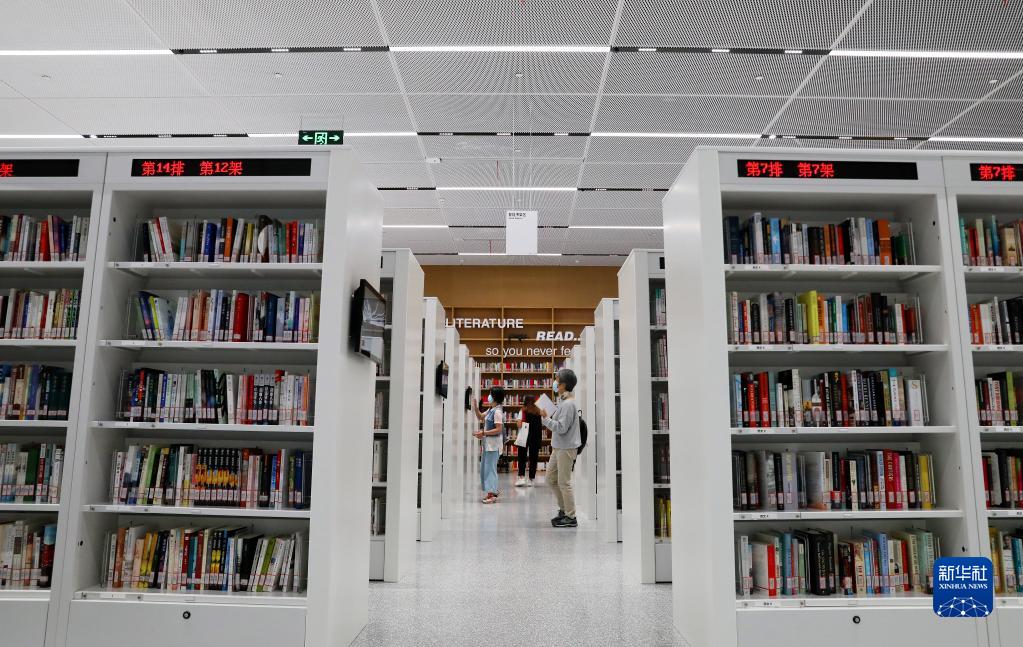 9月28日,讀者走在上海圖書館東館智能書架區內。