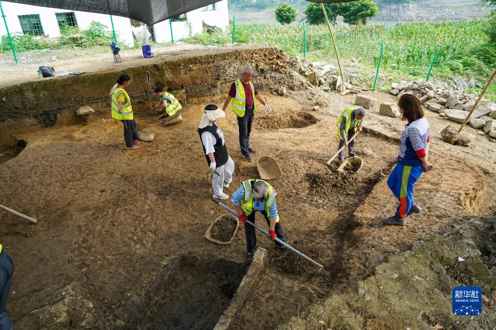 工作人員在重慶涪陵區小田溪墓群考古發掘現場作業(2022年8月攝)。
