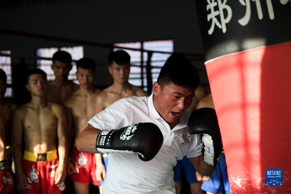 這是李迎港在河南嵩山少林塔溝武校內(nèi)給學(xué)生上課(2022年7月6日攝)。