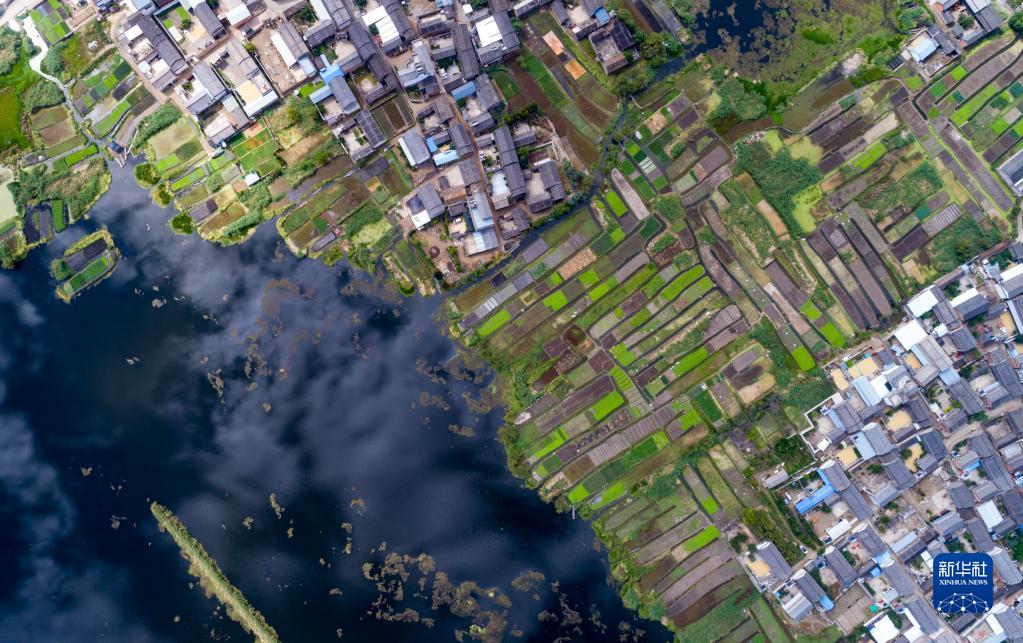 這是9月28日拍攝的洱源西湖島上的田園景觀(無(wú)人機(jī)照片)。