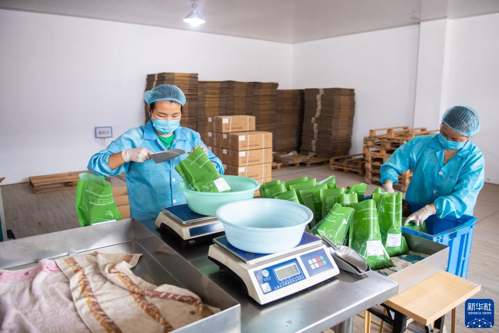 9月29日,在位于常德科技創新創業孵化產業園的德中堂(湖南)醫藥有限責任公司,工作人員給生產好的中草藥裝袋。