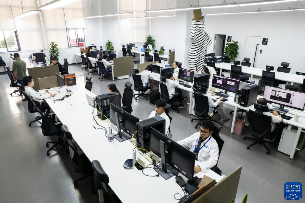 9月29日,在位于常德科技創(chuàng)新創(chuàng)業(yè)孵化產業(yè)園的湖南聯(lián)科科技有限公司,人們在辦公區(qū)工作(無人機照片)。