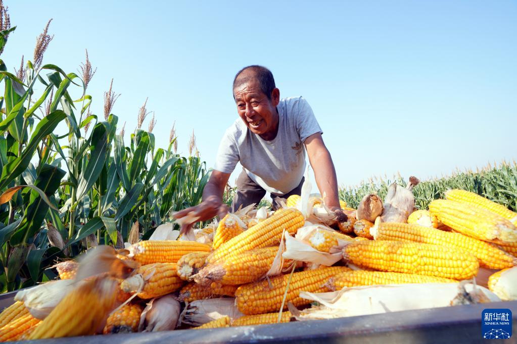 9月29日,在山東省樂陵市蘆庵村,村民在收獲玉米。