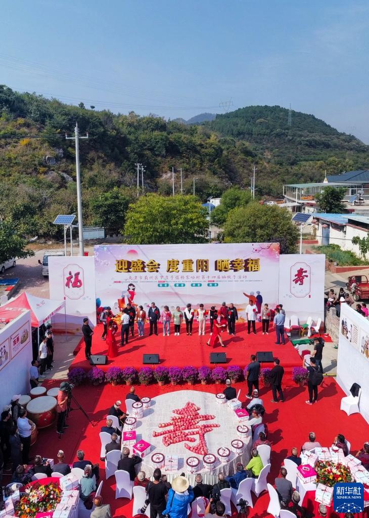 9月28日,在天津市薊州區(qū)羅莊子鎮(zhèn)楊家峪村,村民們參加重陽(yáng)節(jié)“曬被子”活動(dòng)(無(wú)人機(jī)照片)。