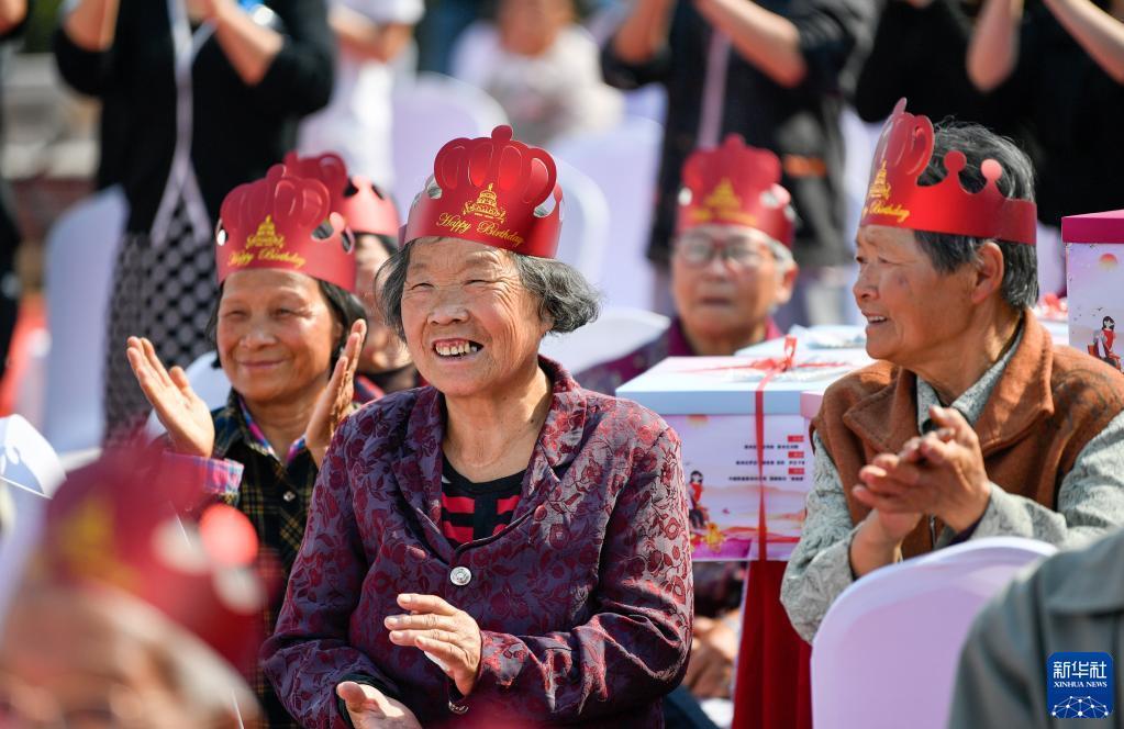 9月28日,在天津市薊州區羅莊子鎮楊家峪村,老人們在觀看文藝表演。