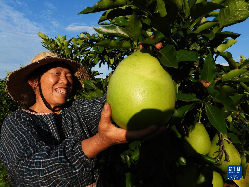 9月29日,在四川省達州市大竹縣楊家鎮的蜜柚產業園,果農采收蜜柚。