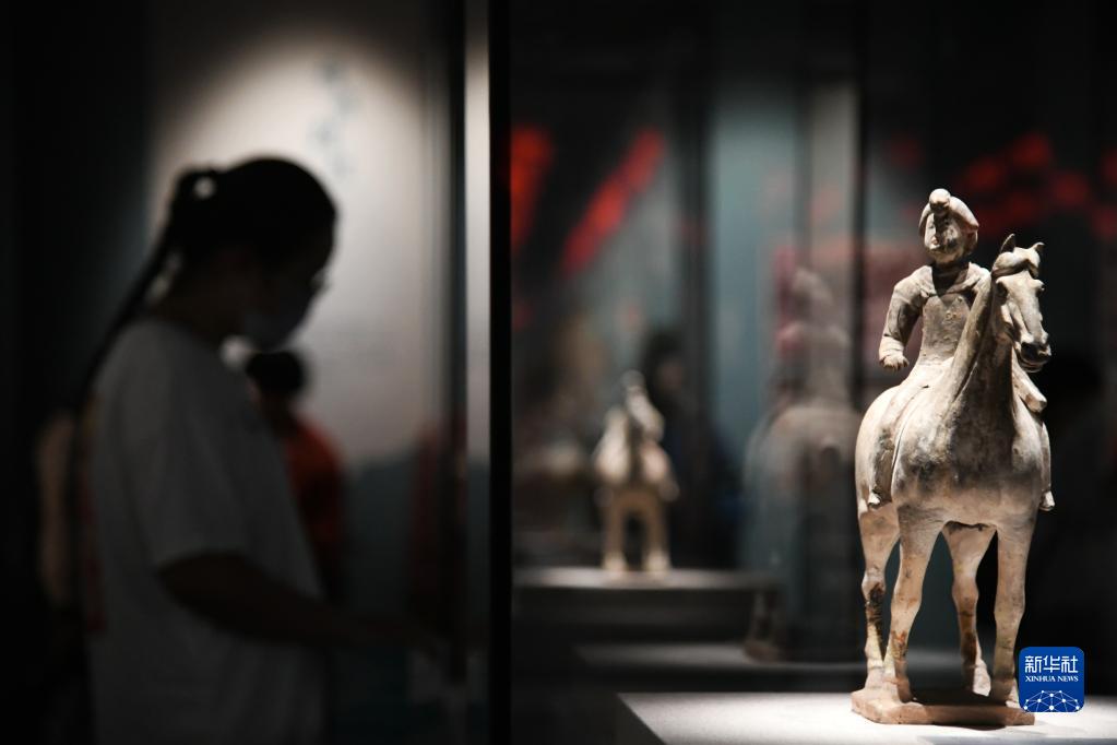 9月30日,觀眾在西安博物院參觀大唐金鄉縣主展。
