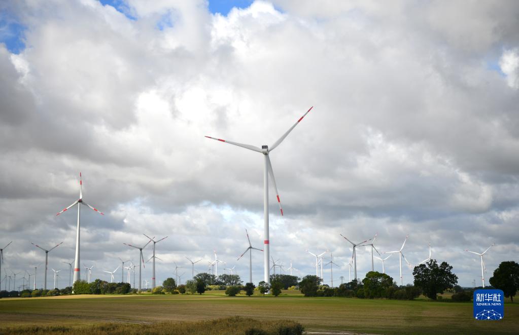 這是9月15日在德國勃蘭登堡州拍攝的風電設施。
