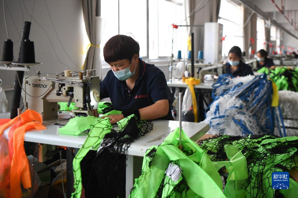 2022年9月27日,工人在湖南省沅江市湖南星海運動用品有限公司加工運動用網。近年來,這家傳統漁網生產企業轉型生產運動休閑用網。