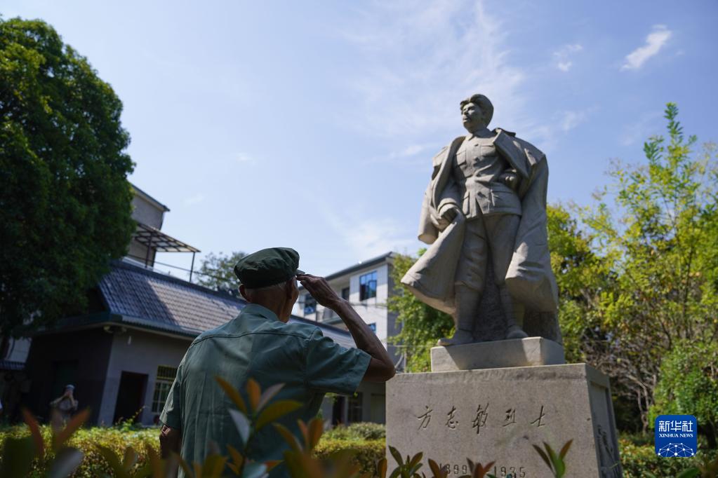 9月23日,程樟柱在方志敏烈士塑像前向先烈行軍禮。